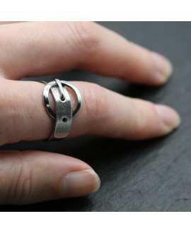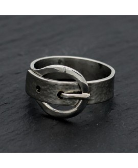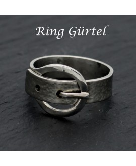 Dieser Ring ist aus der Produktlinie Modell: Gürtel von Rüdiger Böttner entworfen und hat die Form eines Gürtels aus Edelstahl. Die gehämmerte Fläche wird mit verschiedenen Oberflächen Muster angeboten. Die Gürtelschnalle ist Hochglanzpoliert, das ergibt einen schönen Kontrast zur gehämmerten Fläche des Gürtels.