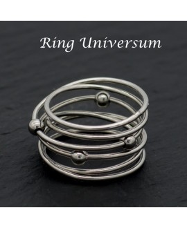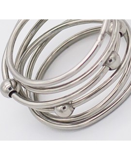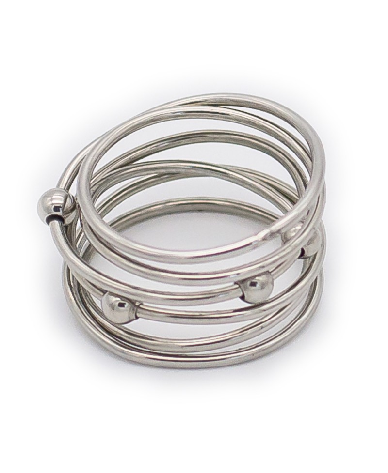 Die Besonderheit dieser Ringserie aus feinem Edelstahldraht sind die beweglichen Kugeln aus Edelstahl.